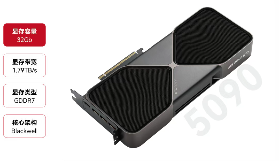 RTX 5090的关键优势在于单卡具备32GB的VRAM容量。